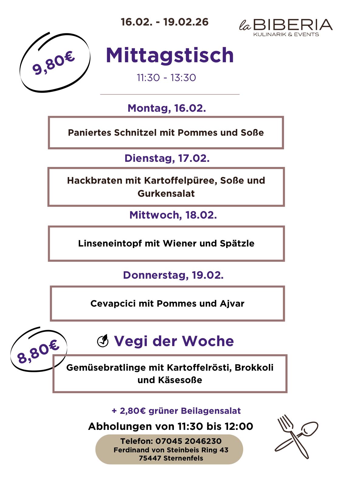 Montag bis Donnerstag verwöhnen wir euch von 11.30 Uhr bis 13.30 Uhr mit einem abwechslungsreichen Mittagstisch – zum abholen oder vor Ort genießen. Unser Getränke- und Kaffeeangebot rundet eure Mittagspause perfekt ab.